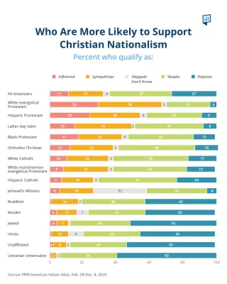 The 2023 PRRI American Values Atlas shows that, except for South Dakota and Nebraska, solid majorities of residents in all these states say abortion should be legal in all or in most cases, including three in four Nevadans (76%), New Yorkers (74%), and Marylanders (73%) and roughly six in ten Coloradans (65%), Floridians (62%), Arizonans (60%), Montanans (57%), and Missourians (55%). A slim majority of Nebraskans (51%) say that abortion should be legal in all or in most cases, while South Dakotans are divided: 47% say abortion should be legal in all or in most cases and 52% say it should be illegal in all and in most cases.
